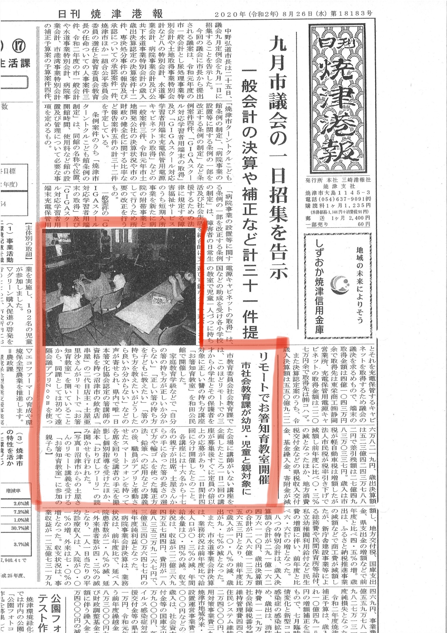 地元紙”焼津港報”に掲載されました。